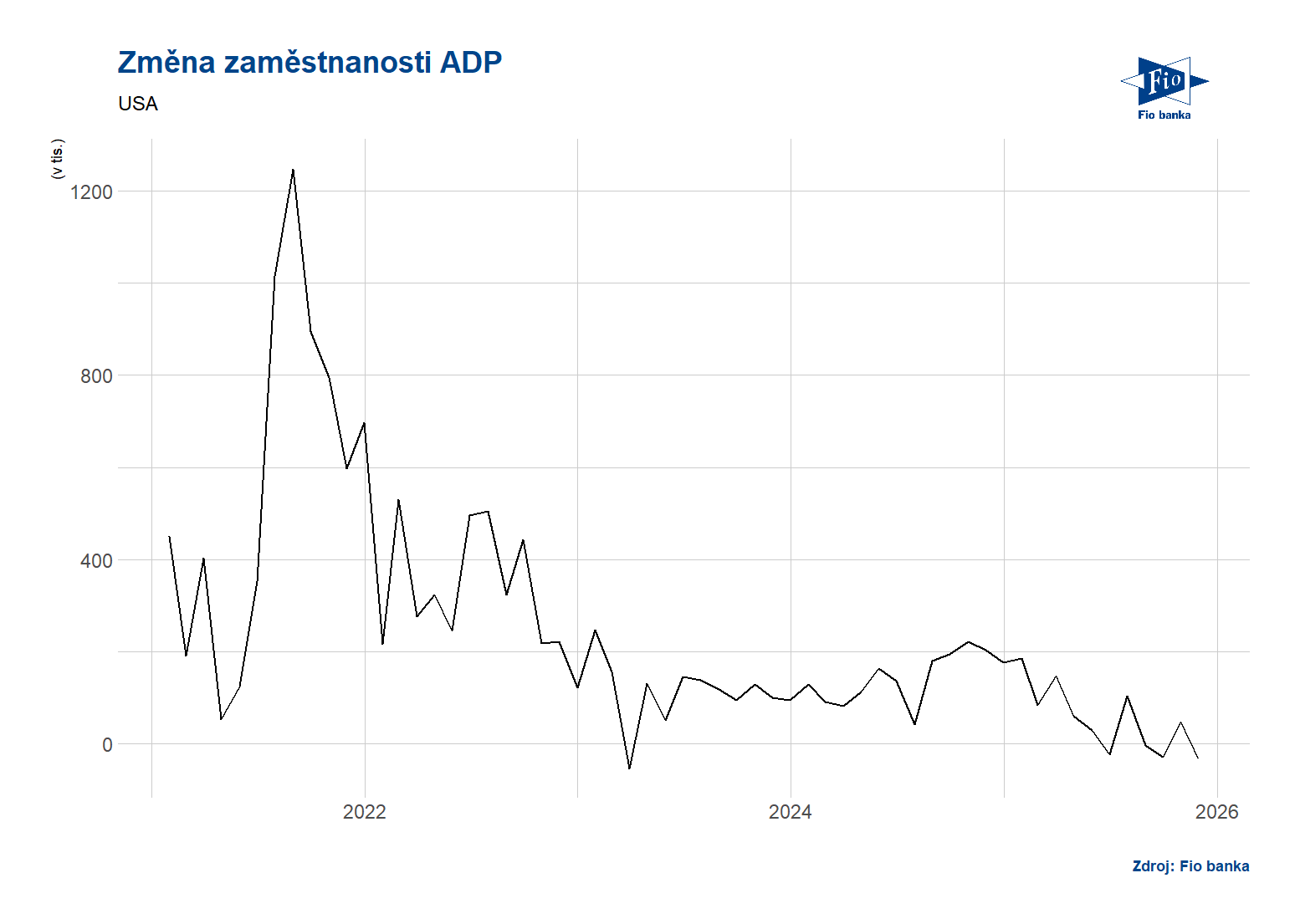 - USA: Zaměstnanost dle ADP poklesla o 32 tis. při očekávání růstu o 10 tis.