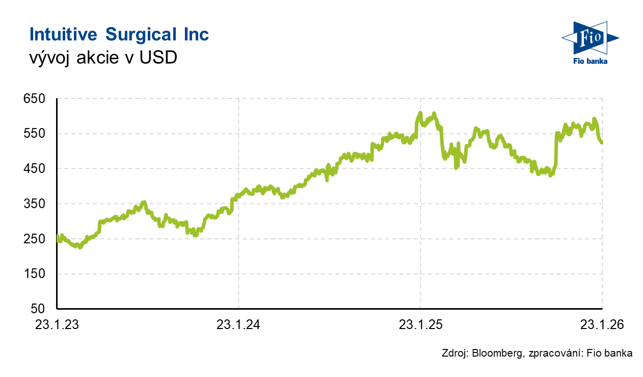 Americká společnost zabývající se vývojem a výrobou chirurgických robotických zařízení Intuitive Surgical zveřejnila své výsledky hospodaření za čtvrtý kvartál. Očištěný zisk na akcii meziročně vzrostl a rovněž překonal očekávání analytiků. Na úrovni výnosů společnost vykázala meziroční růst o 19 % na 2,87 mld. USD. Ve svém ročním výhledu společnost projektuje očištěnou hrubou marži mezi 67 % až 68 % při očekávání trhu 67,2 %.